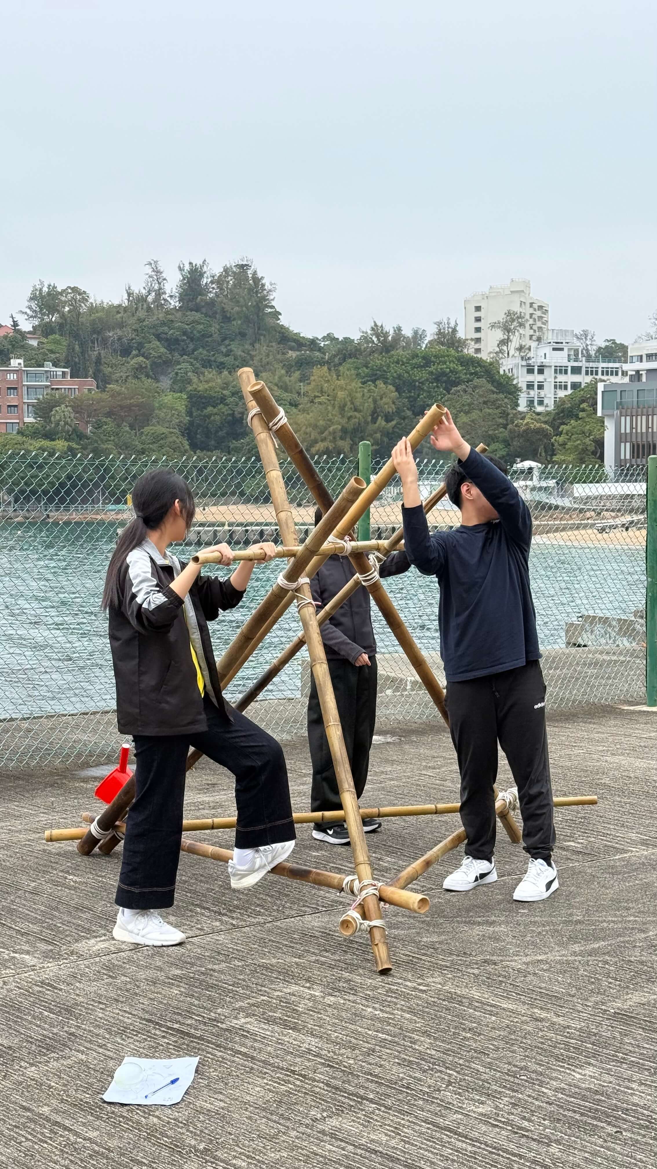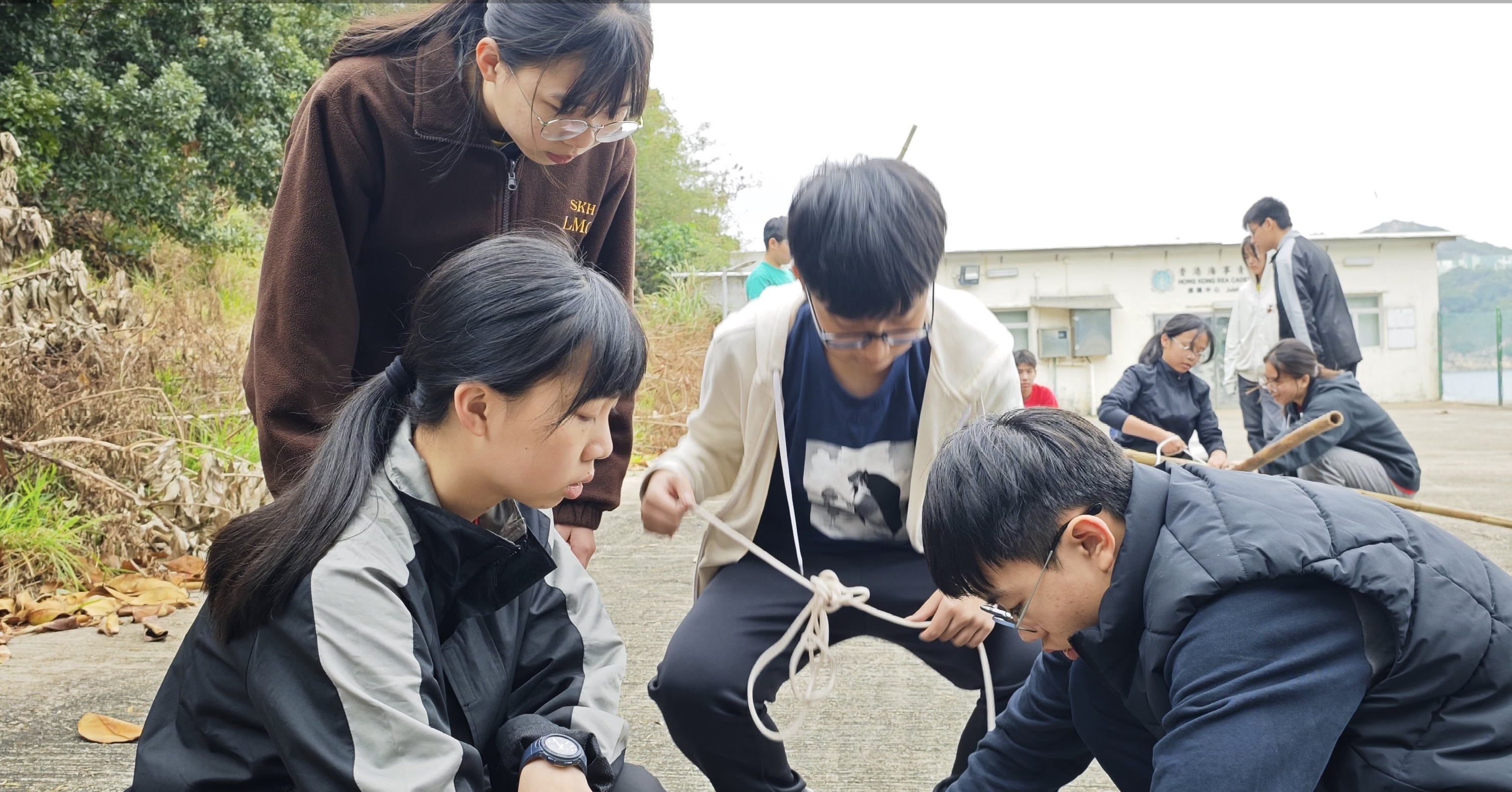 The Discipline Committee held a prefect training camp from February 14 to 15 this year at the Jockey Club Stanley Outdoor Training Camp, with about 40 prefects participating. During the camp, the prefects were divided into small groups. Over the two days, the groups engaged in various team activities, such as building a Roman catapult, completing a cup-stacking challenge, and participating in a river-crossing game. The aim of the prefect training camp was to inspire the leadership potential of the students and to encourage them to reflect on the importance of following rules and teamwork through these activities. This is intended to help them perform better in their daily roles and to promote a better learning atmosphere and environment in the school.