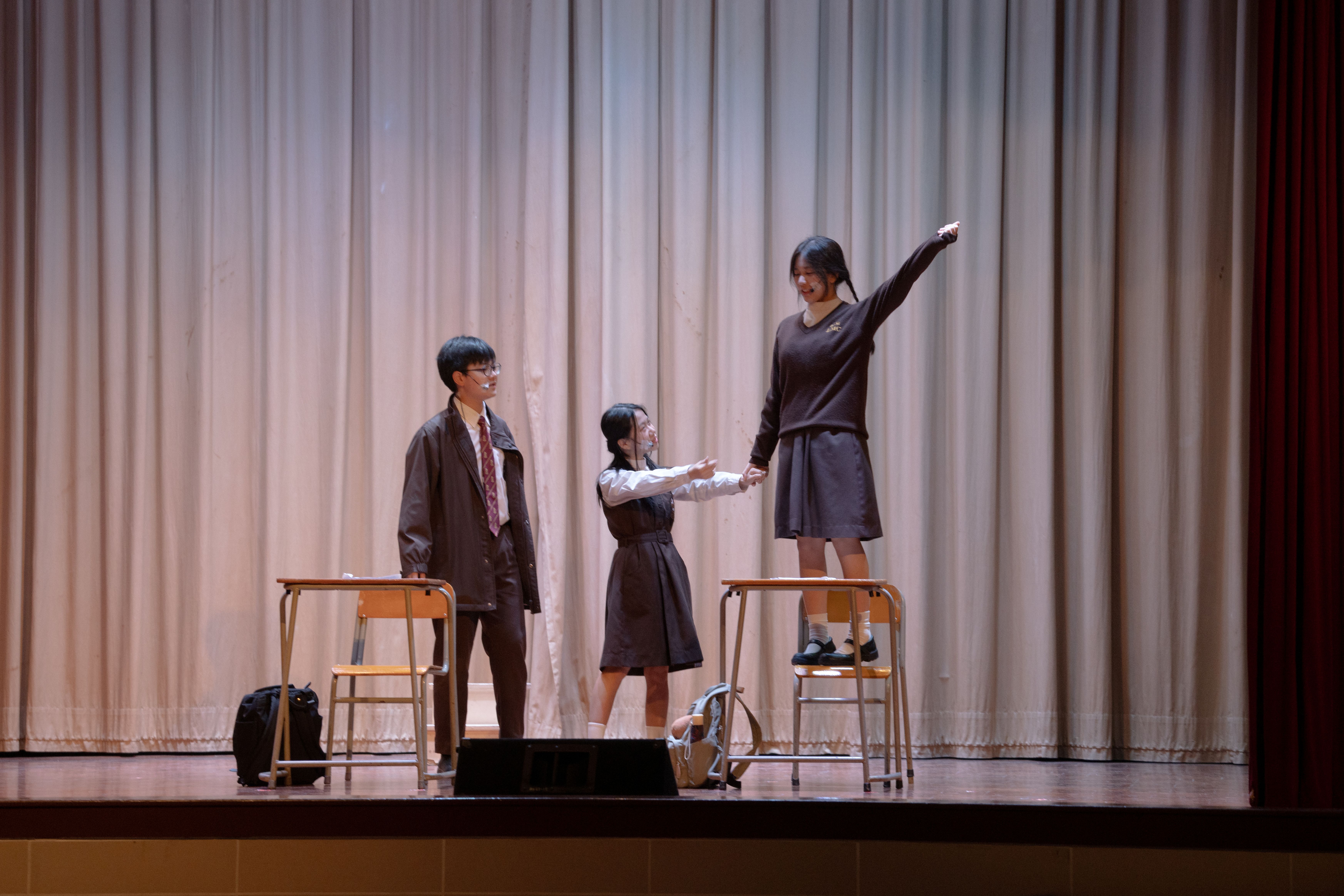 As a result, we have won some significant awards, such as Awards of Outstanding Performance, and Outstanding Performer in 2019 EMI Drama Fest, Awards of Outstanding Performer, and Outstanding Script in 2023 EMI Drama Fest, Awards of Outstanding Script, Outstanding Performers and Outstanding Cooperation in Hong Kong School Drama Festival. In the year 2024/25, we have won the Award for Commendable Overall Performance, Outstanding Director, Outstanding Script and four Outstanding Performers for our original show called ‘Que Sera’ in Hong Kong School Drama Festival